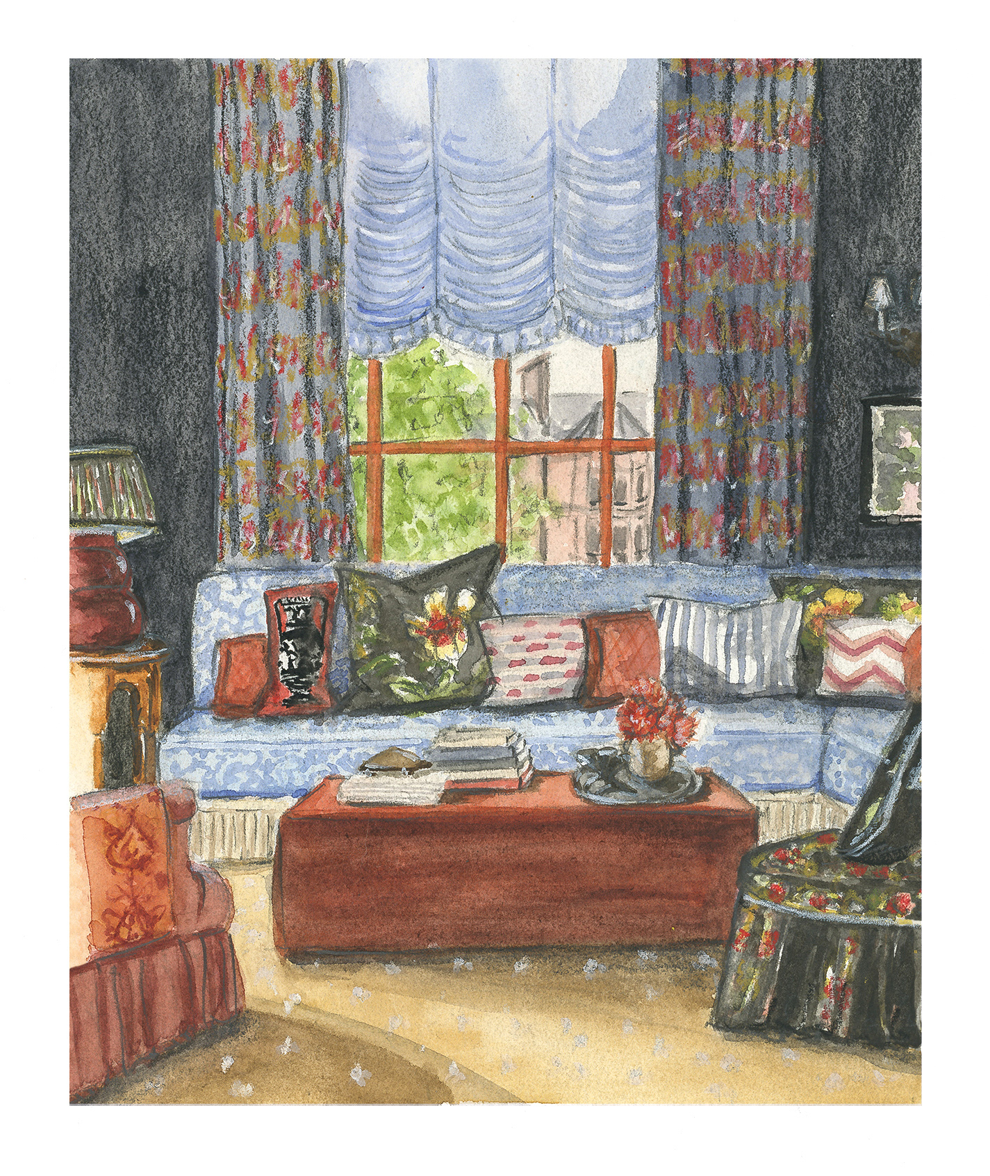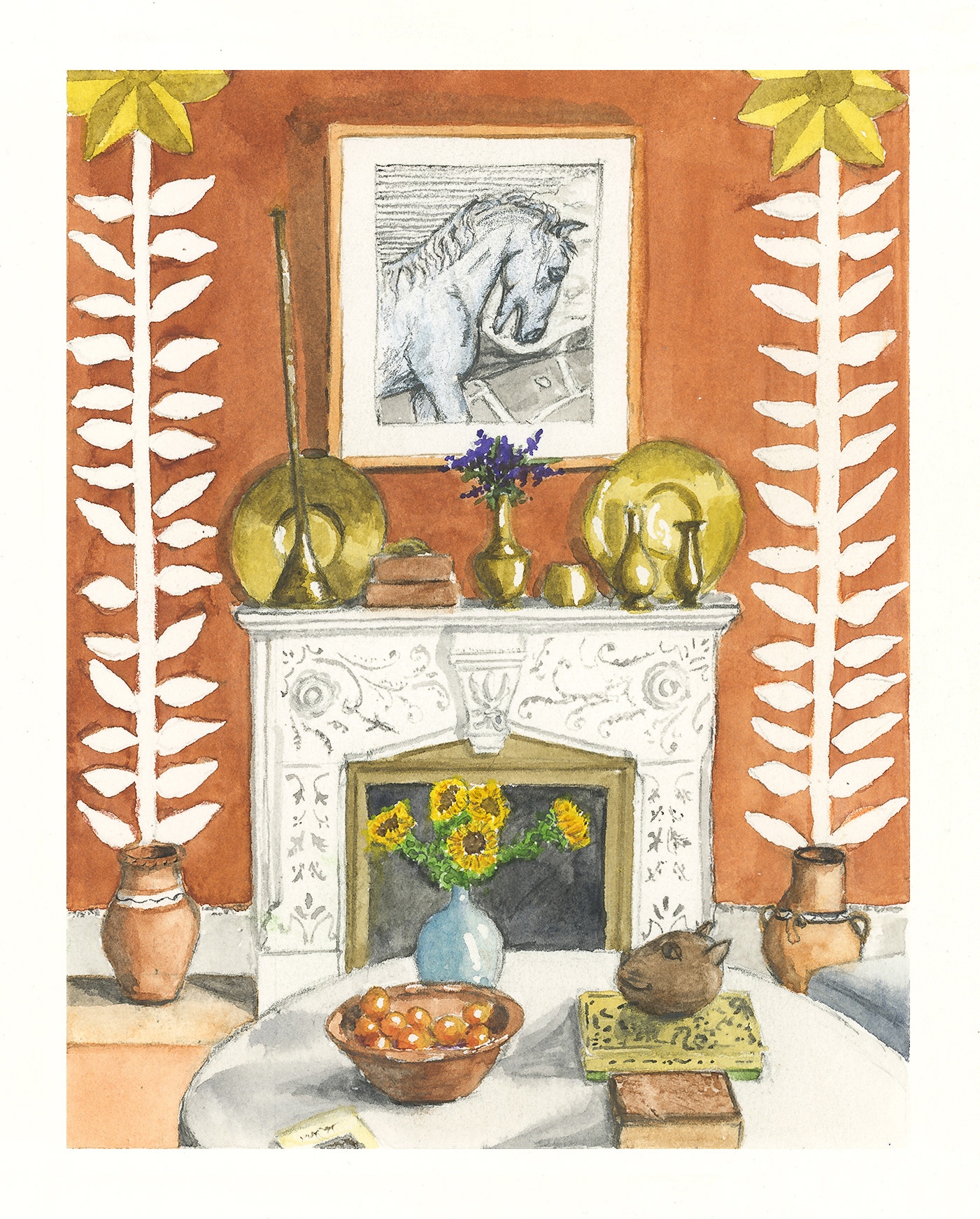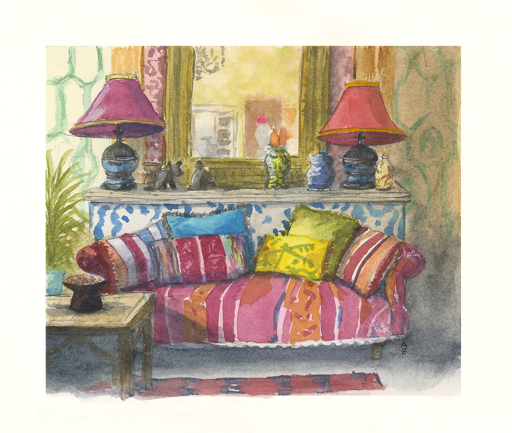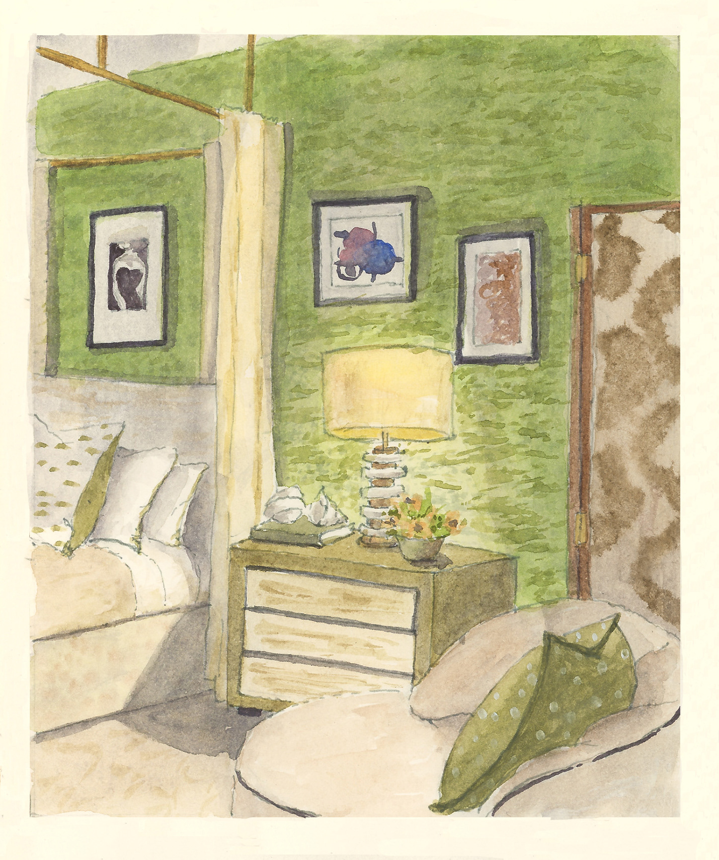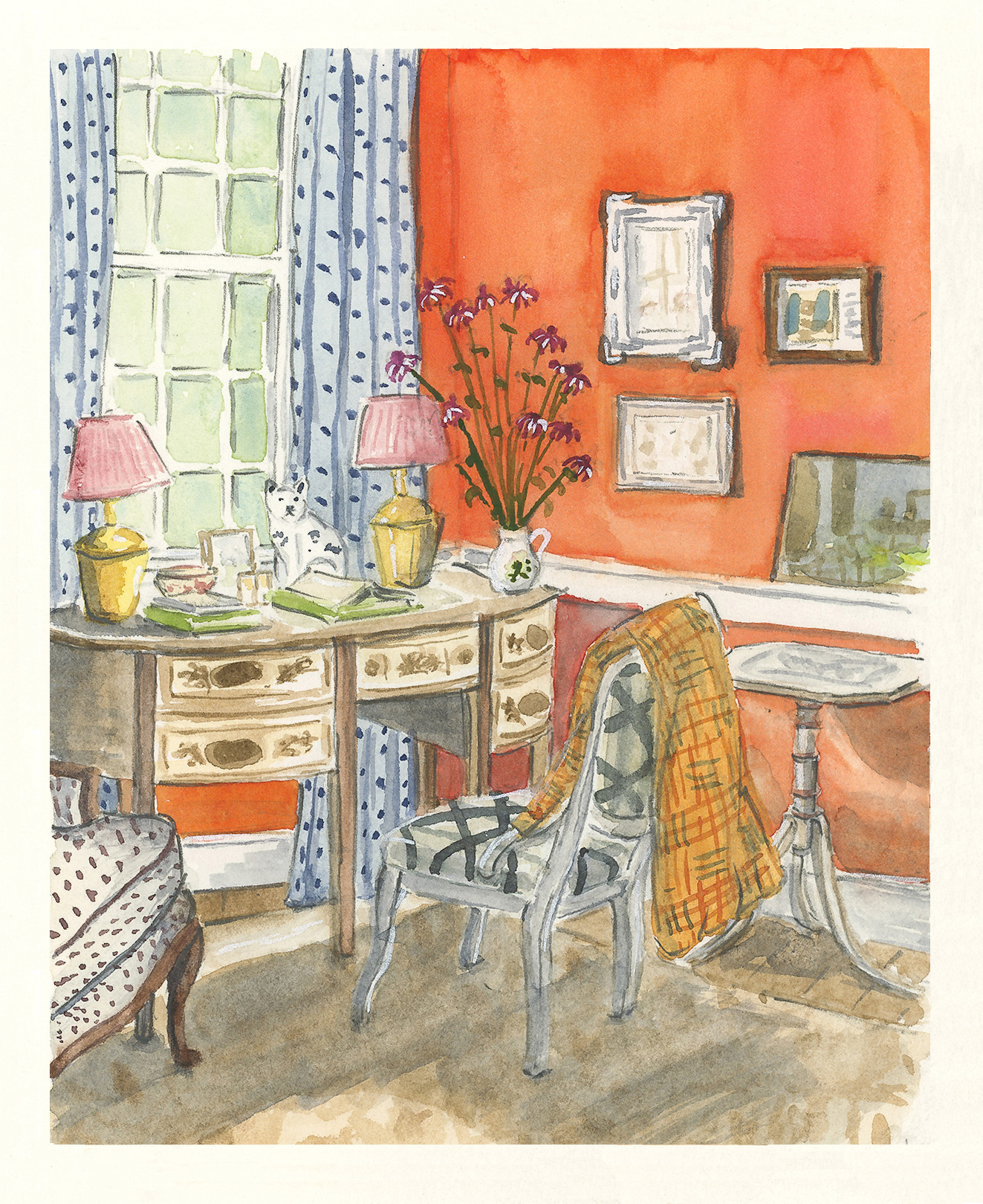 A series of interior sketches done for Room Portrait Club–a drawing challenge on Instagram featuring a new inspiration room each week.